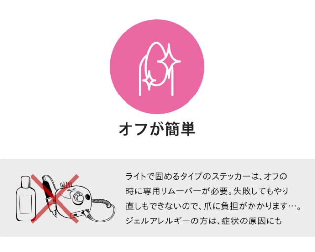 シールなら貼り替えるだけなので自爪への負担もほどんどありません!