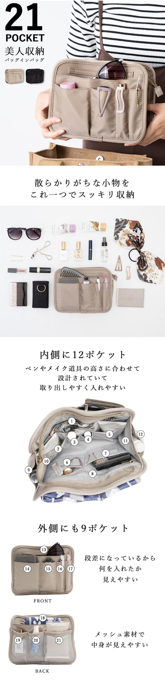 バッグインバッグ 大容量 軽い 美人収納 自立 ファスナー 仕切り レディース インナーバッグ 小さめ 整理 整頓 プレゼント 母の日 ギフト メール便送料無料