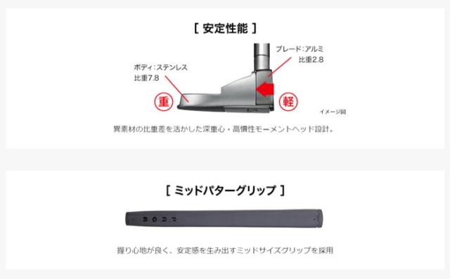 深重心でヘッドが前へ出る、打点がバラついても転がりのロスが少ない設計。