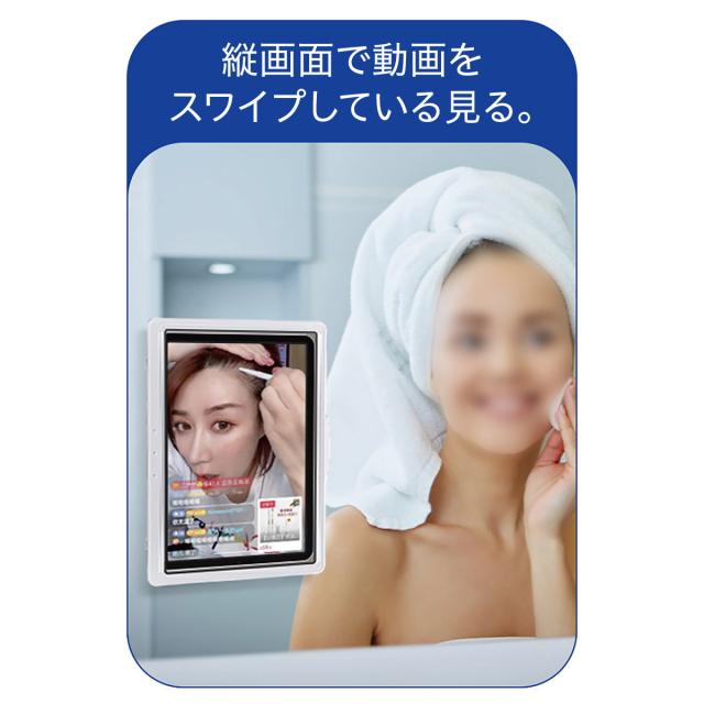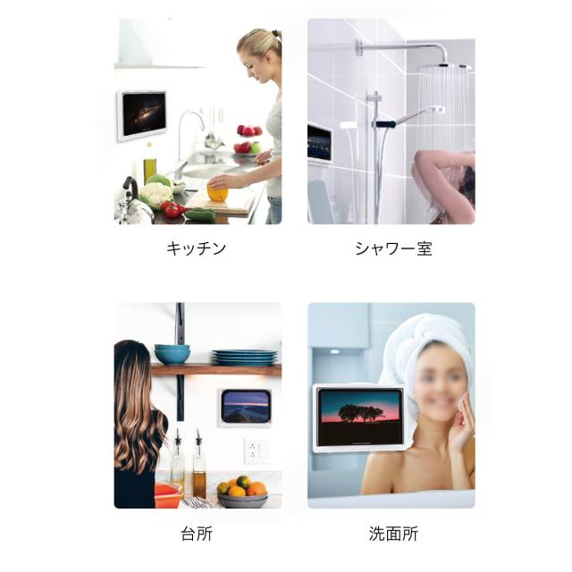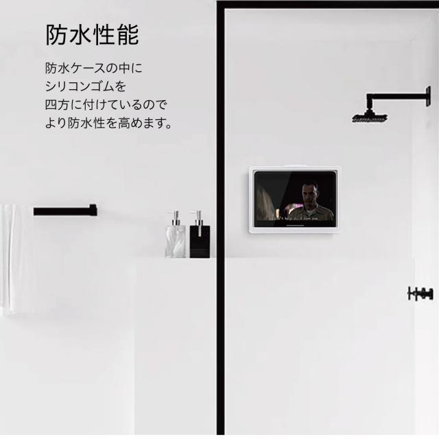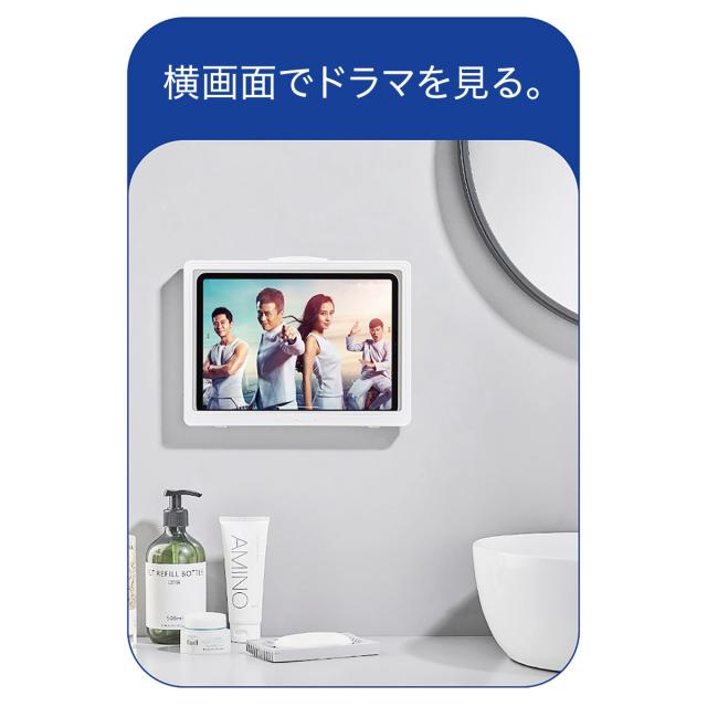 壁掛けタイプなので、浴室で安心して動画などを楽しめます。