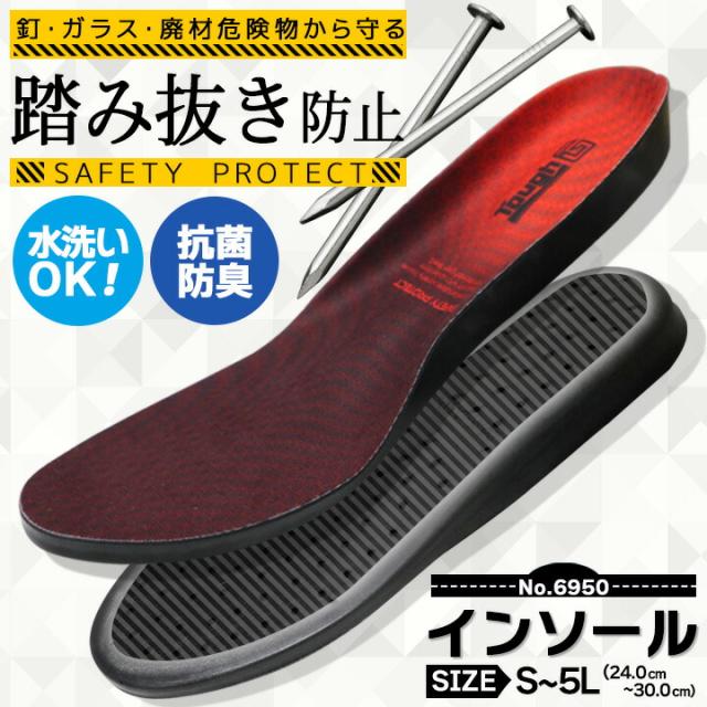 【即日発送】インソール 中敷き 踏貫防止 抗菌 防臭 水洗いOK クッション性 6950 安全靴 スニーカー セーフティシューズ 喜多【送料無料】