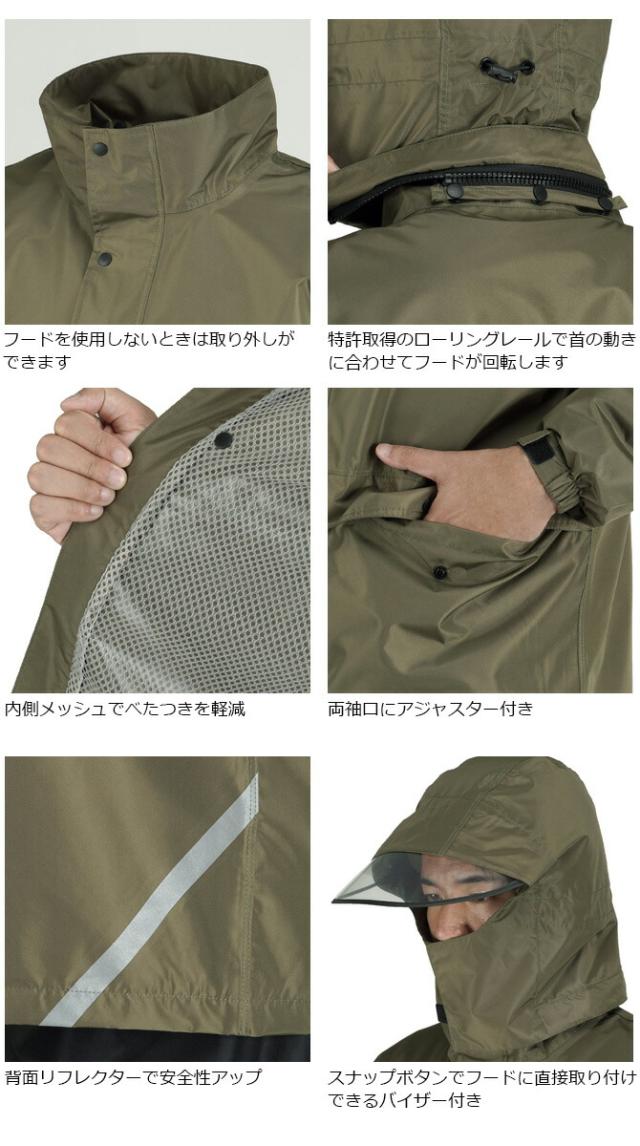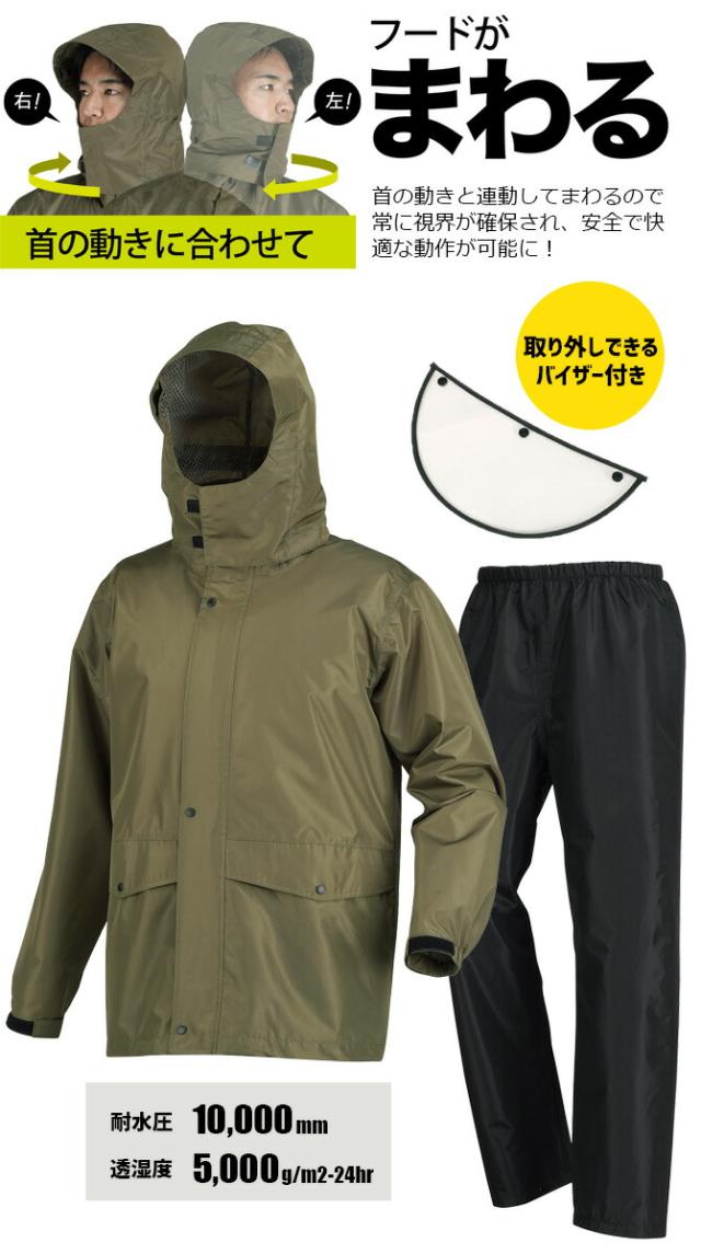 ローリング レインスーツ PIRARUKU ピラルク 7541 バイザーシステムウェア カジメイク メンズ レディース レインジャケット レインパンツ 上下セット バイザー付き 回転フード 防水 透湿 耐水 軽量 合羽