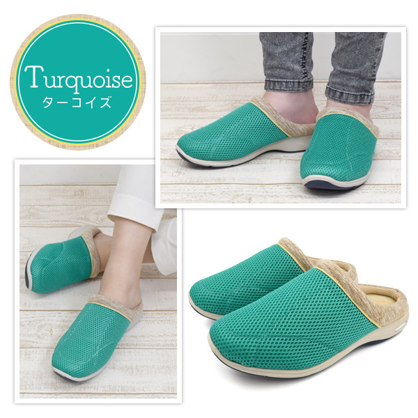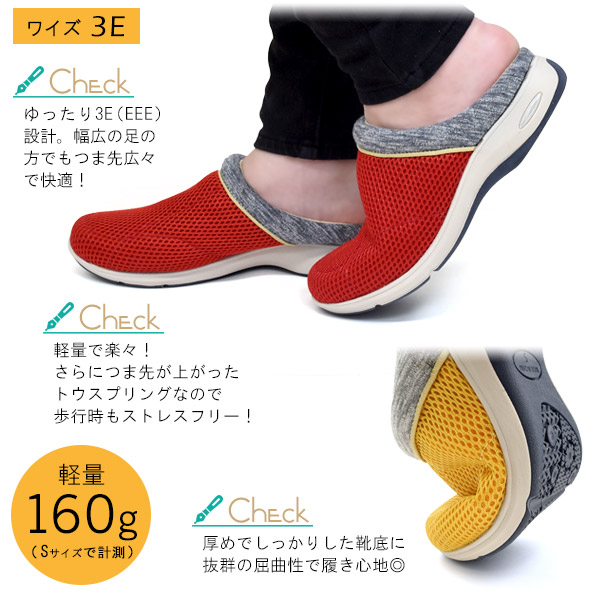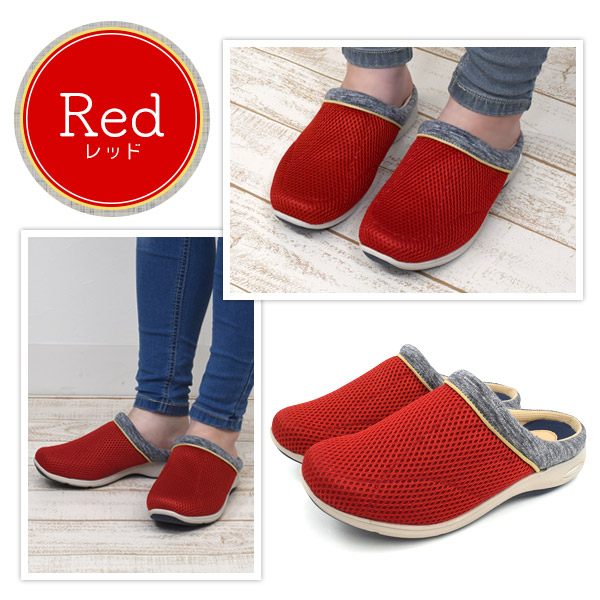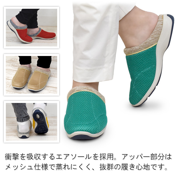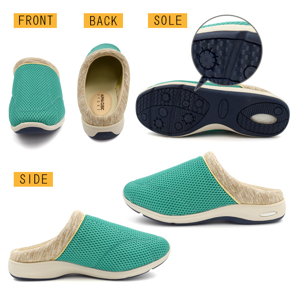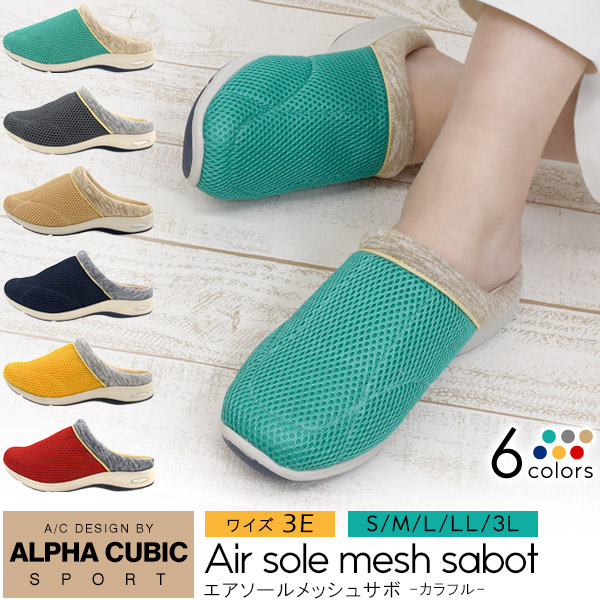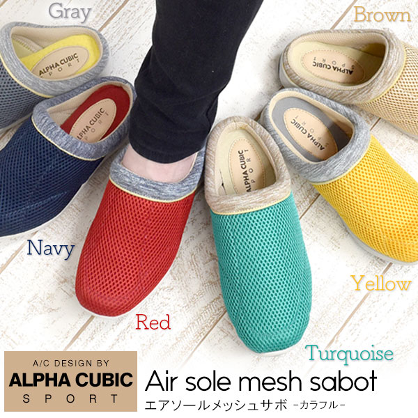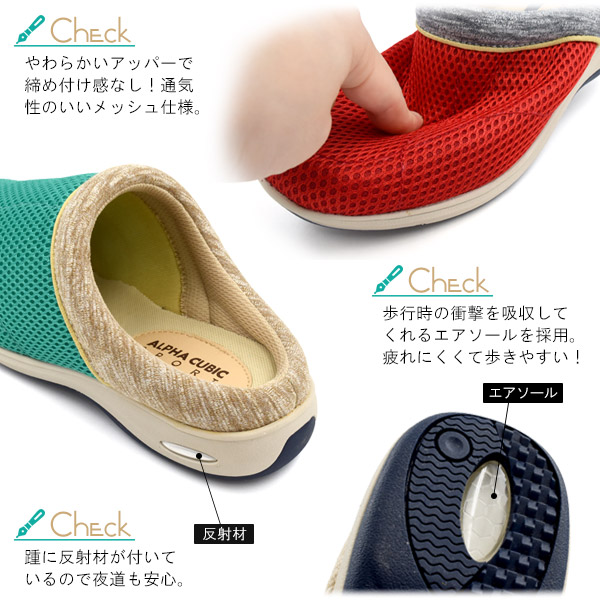 サッと履けてらくちん!エアソールで履き心地抜群!アルファキュービック レディース エアソールメッシュサボ -カラフル-