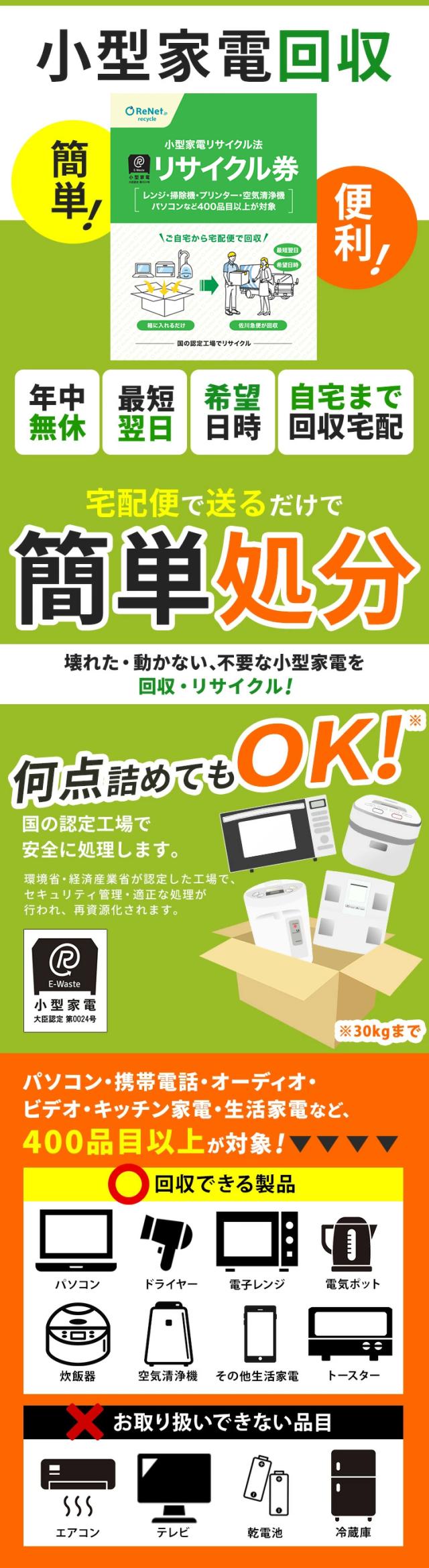 小型家電リサイクル券 【廃家電を自宅から宅配便で回収】 (メール便) リサイクル リサイクル券 リサイクル回収 宅配便回収 回収 引取り 不要家電の回収 不要家電の引取り 送料無料