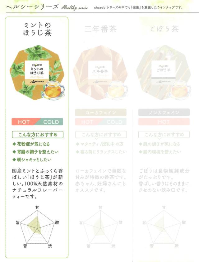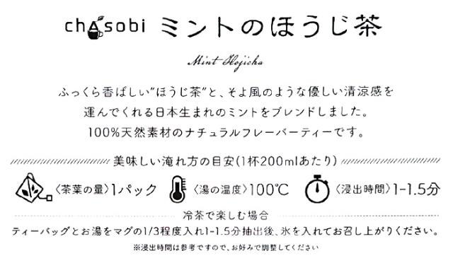 フレーバーティー ミントのほうじ茶 ティーバッグ 8袋入り 送料無料 「ちゃそび」chasobi ヘルシーシリーズ お茶 茶 ミント ほうじ茶 agesugi_sgu