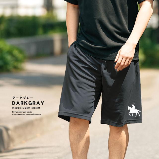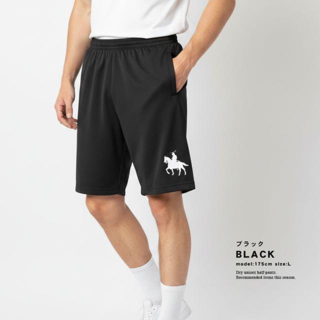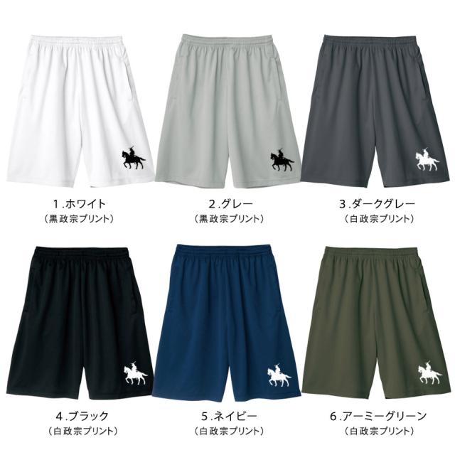 ハーフパンツ ハーパン ショートパンツ 吸汗速乾 レディース メンズ ボトムス 体操服 サラサラ 軽量 涼しい 快適 冷感 政宗 仙台藩 伊達政宗 騎馬像 ワンポイント プリント 無地 ラッシュガード ウエストゴム メッシュ UV 送料無料 (toms00325)
