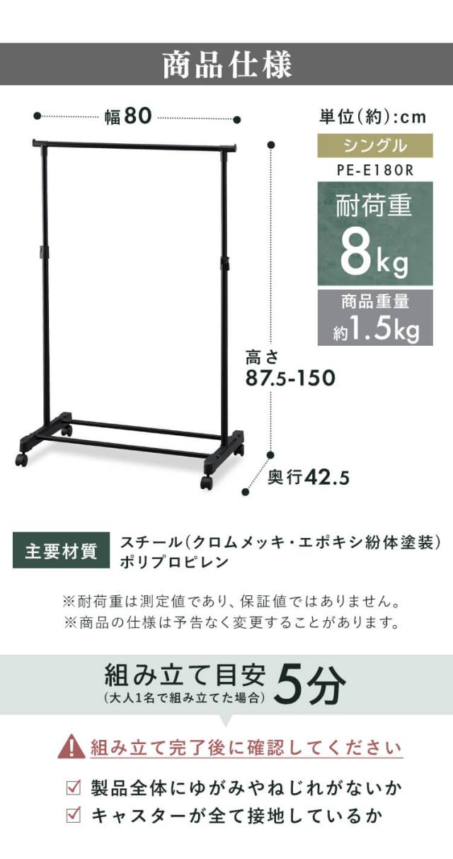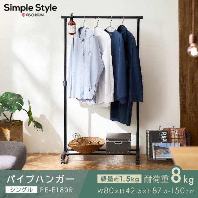 パイプハンガー シングルタイプ PE-E180R ブラック ハンガーラック パイプハンガー コートラック ハンガー 洋服掛け コート掛け クローゼット ランドリーラック ラック 衣類 洋服 収納 高さ調節 キャスター付き シンプル 4967576632560 アイリスオーヤマ