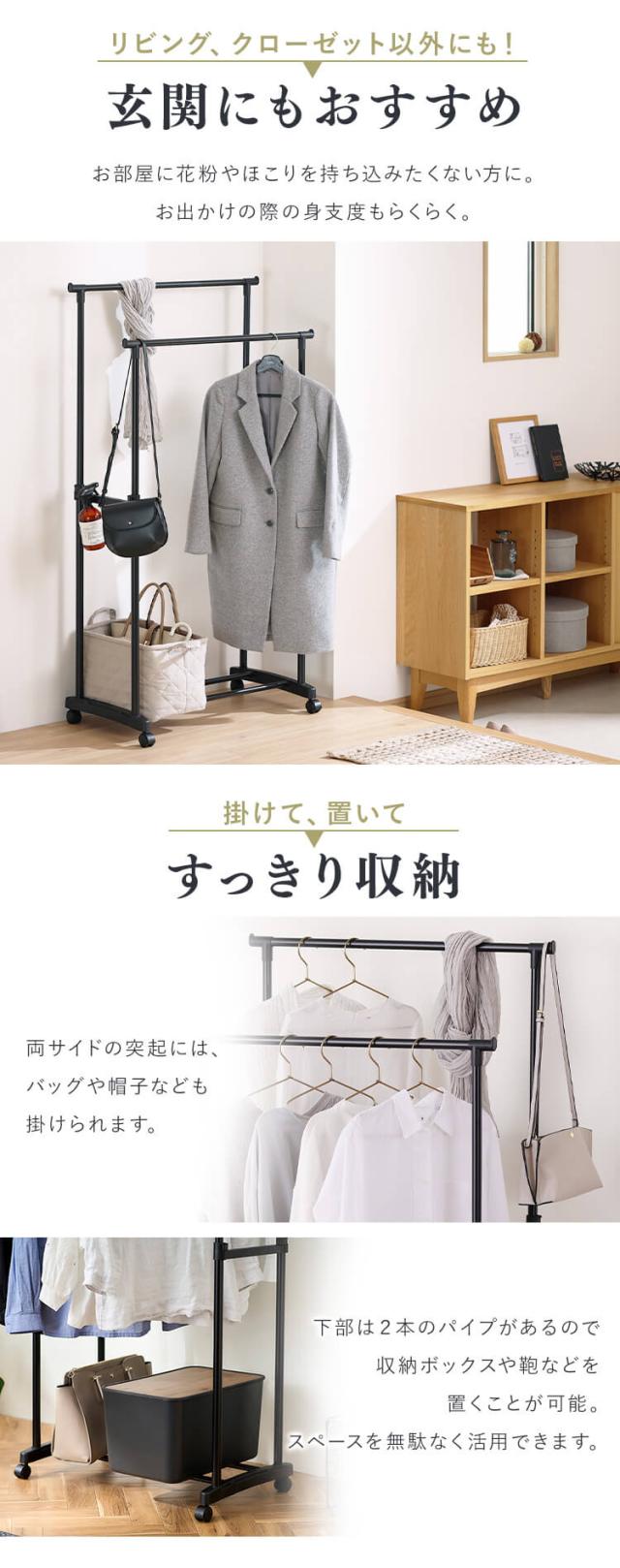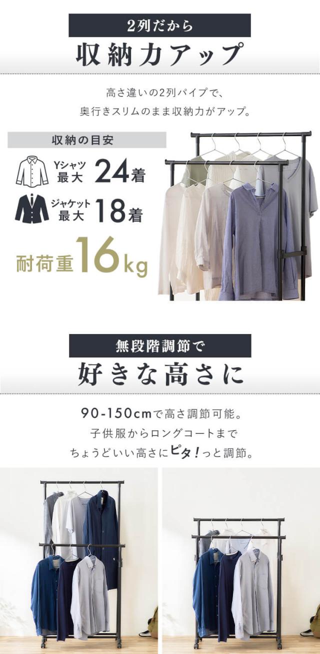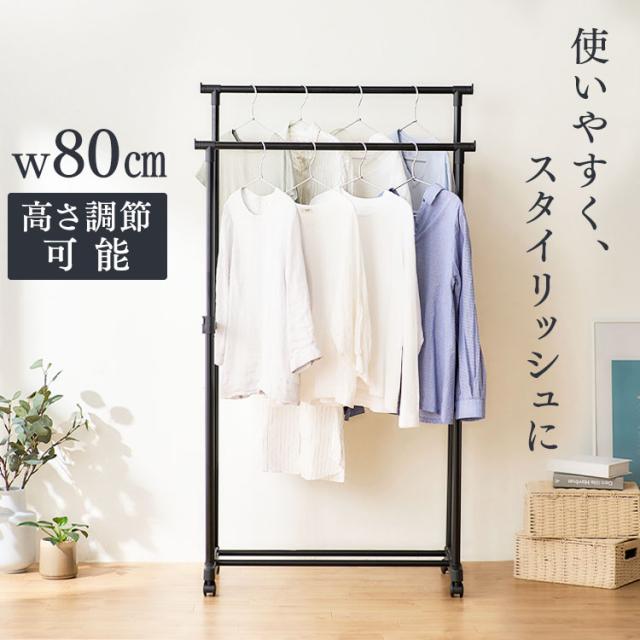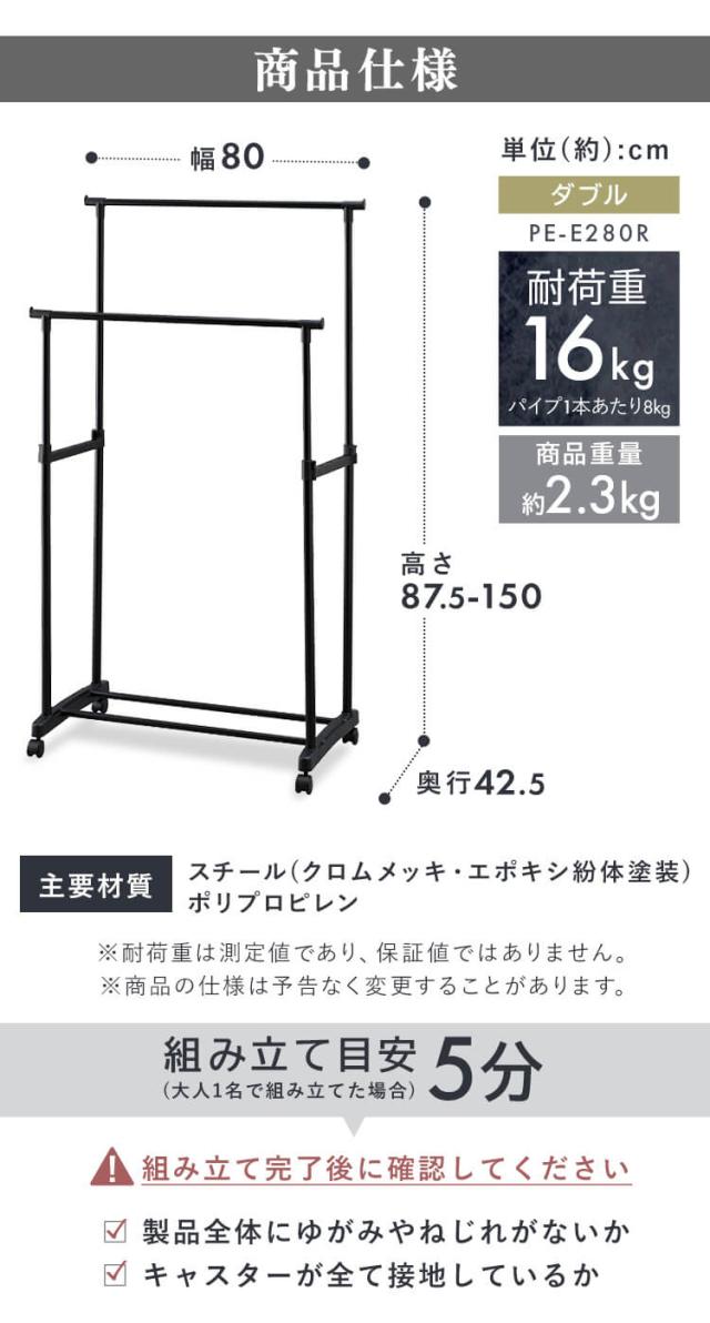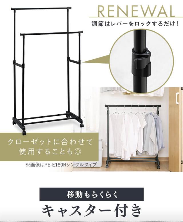 パイプハンガー ダブルタイプ PE-E280R ブラック ハンガーラック パイプハンガー コートラック ハンガー 洋服掛け コート掛け クローゼット ランドリーラック ラック 衣類 洋服 収納 高さ調節 キャスター付き シンプル 4967576632577 アイリスオーヤマ