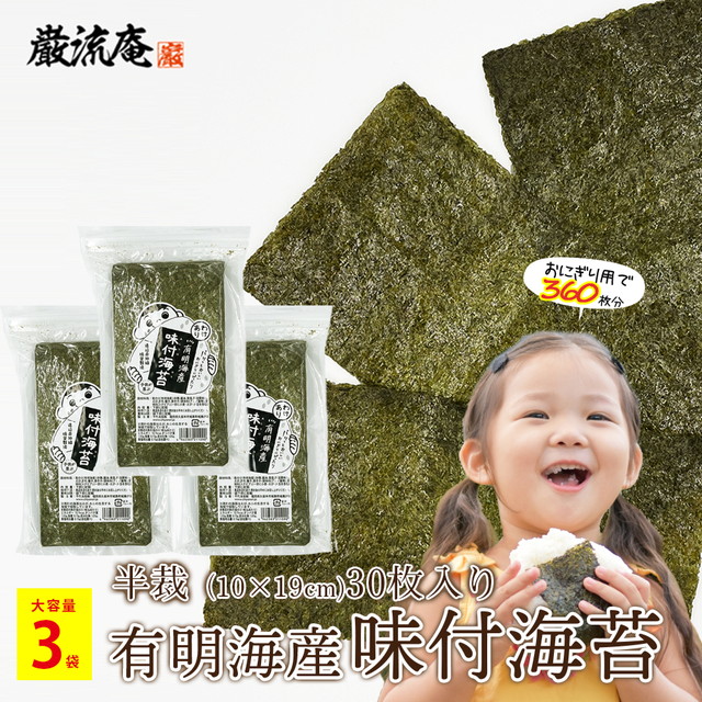 味つけ 海苔 訳あり 送料無料 わけあり 海苔 味のり 有明海産 味付海苔 味付けのり 半切 半裁 30枚 3袋 セット 千代海苔 おにぎり 手巻き寿司 おむすび 8切 八切り 業務用 大容量 big お試し