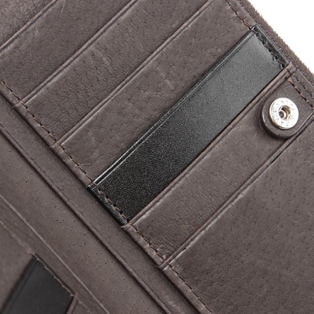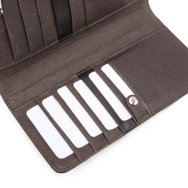 | 素材感とカラーリングで魅せるLong wallet ・奥行きのある美しいカラー 本体革には「タンポナート」と呼ばれる職人が手作業によるアンチック加工を施したこだわりのフルタンニンレザーを使用。顔料を使わず、染料のみで仕上げたレザーには、美しい透明感があり、使い込む程にアイロン艶が落ち着き、革本来の底艶が表面に現れる経年変化が楽しめます。 ・こだわり機能 暑さ2センチとスリム仕様ながら、収納力抜群。カードは縦に並ぶタイプなので、取り出しや視認もしやすいデザイン。また、小銭入れが本体の外側に独立し、カードとお札の収納部まで開く必要がありません。 |