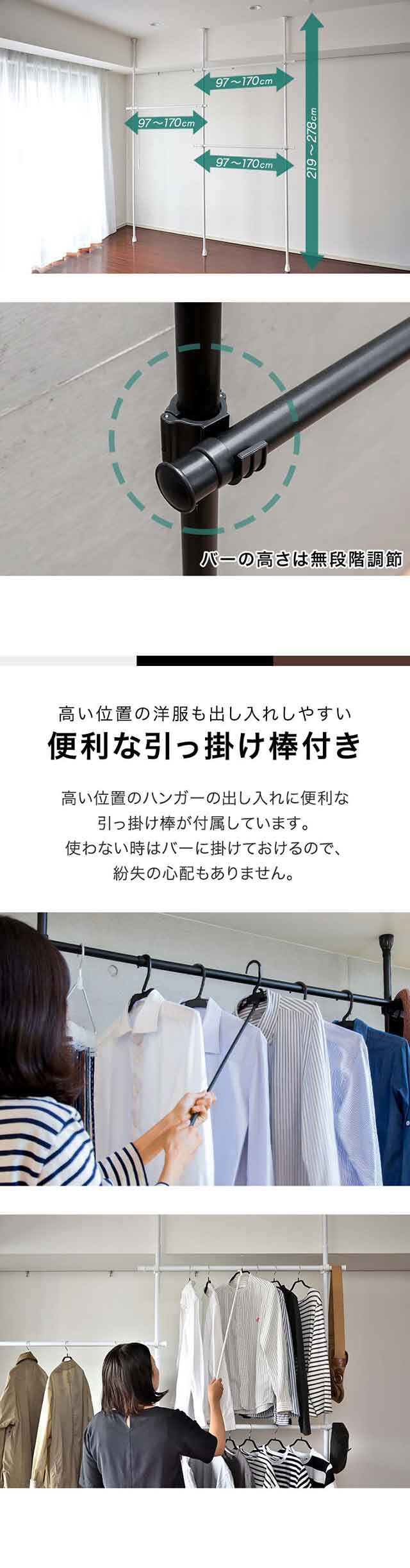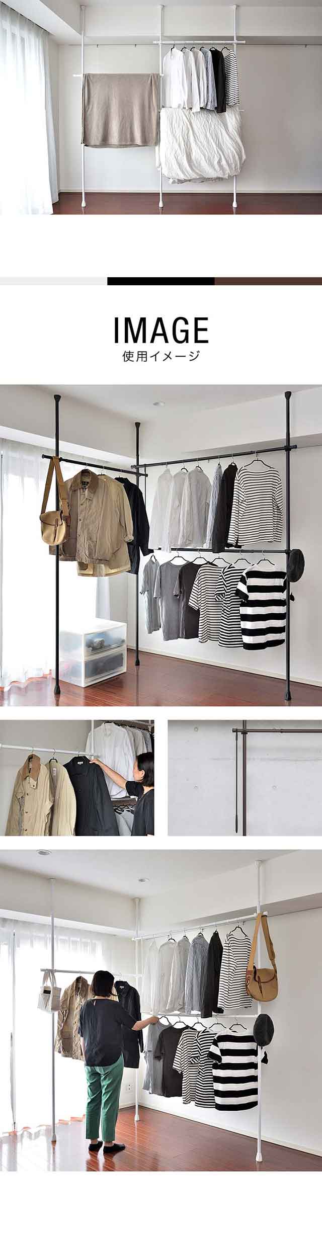 インテリア 収納 ハンガーラック ダブル 2段 伸縮 突っ張り式 つっぱり式 突っ張り固定 固定式 突っ張りハンガー つっぱりハンガー 突っ張りハンガーラック ラック パイプハンガー ポールハンガー ハンガーラック 洋服掛け コートハンガー コート掛け ウォークインクローゼット ハンガー クローゼット クローゼット収納 収納 衣類収納 物干し 洗濯物 布団干し 室内干し 壁面収納 突っ張り 突張り つっぱり ツッパリ ダブルハンガー 2段ハンガー コンパクト 省スペース 大容量 ヴィンテージ ビンテージ 西海岸 北欧 おしゃれ 男前 ナチュラル パイプ スマート ダイニング 黒 白 茶 ブラック ホワイト ブラウン シンプル スチール インテリア・寝具・収納 収納家具 クローゼット・ワードローブ