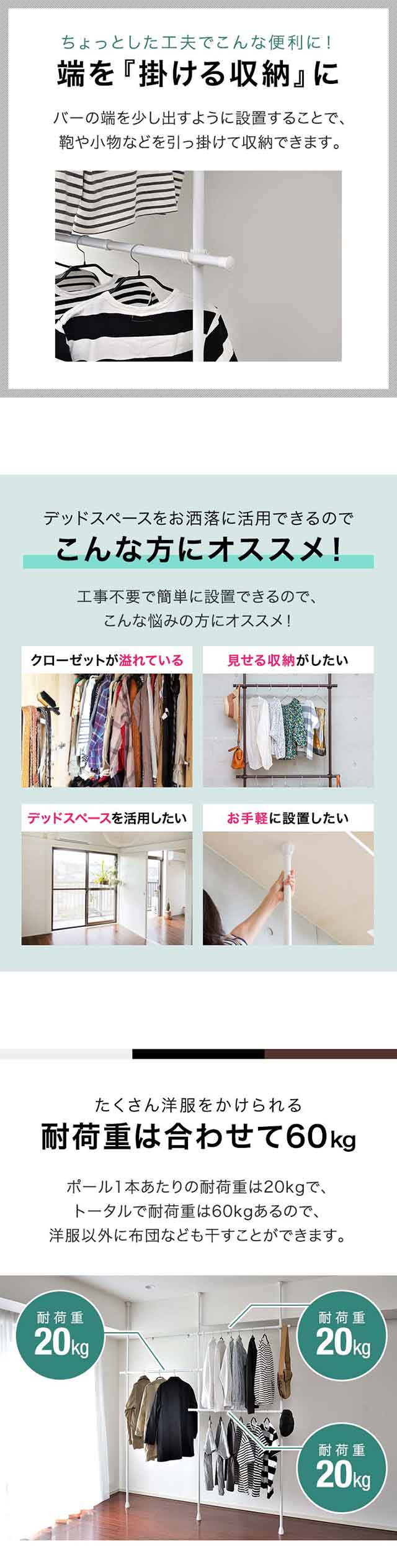 - 1人での取り付けは無謀です。笑 洋服収納に困っていたので、 これがあるのとないのじゃ違います。