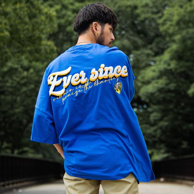Tシャツ メンズ 半袖 トップス 綿100%コットン ロゴ サガラ刺繍 ストレッチ クルーネック ビッグシルエット インナー オーバーサイズ ビッグサイズ 大きいサイズ 部屋着 ルームウェア ユニセックス ブルー ブラック ホワイト 黒 白 M L カットソー ストリート ストリート系 ストリートファッション 韓国 韓国系 韓国ファッション 下北沢 下北系 古着 古着系 90s 90年代 CavariA キャバリア 春 夏 男性 男 父の日 父の日ギフト 父の日プレゼント 20代 30代 40代 メンズファッション 東京 プレゼント 誕生日 記念日 贈り物 ギフト配送について