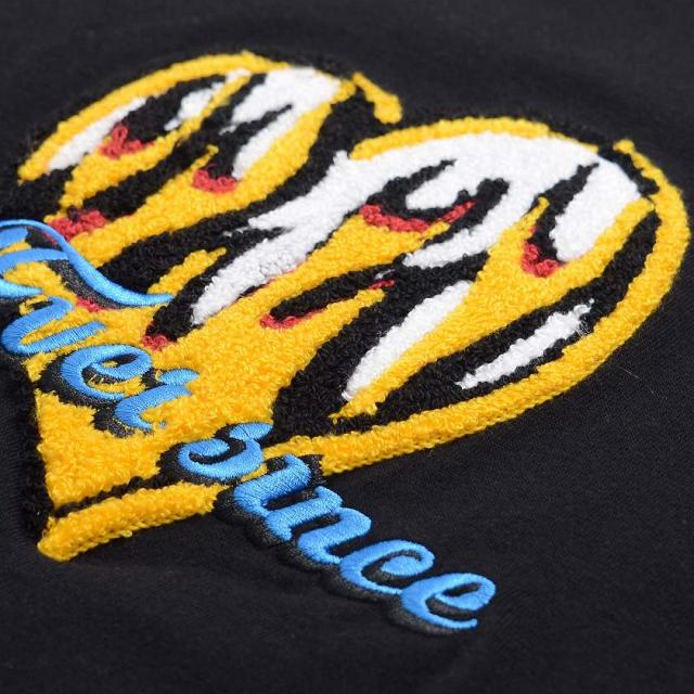 フロントにワンポイントとバックにサガラ刺繍をあしらったインパクト抜群の半袖Tシャツ。
