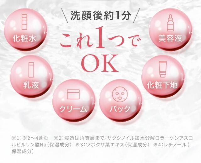 さらに、ヒアロリペア※4など60種※5の保湿成分を配合し、濃厚な潤いで、もっちりとしたツヤのあるハリ肌へ導きます。