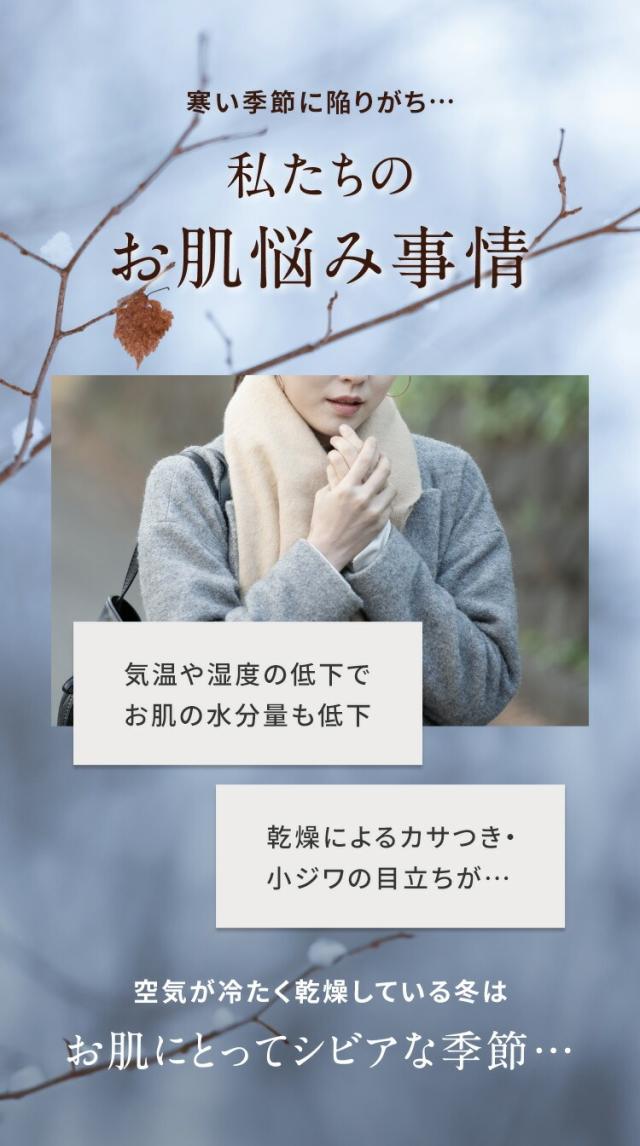 ※1 年齢に応じた肌のこと ※2 サクシノイル加水分解コラーゲンアスコルビルリン酸Na(保湿成分)を世界で初めて新日本製薬が化粧品に配合。新日本製薬調べ ※3 浸透は角質層まで。サクシノイル加水分解コラーゲンアスコルビルリン酸Na(保湿成分)※4 加水分解ヒアルロン酸アルキル(C12-13)グリセリル(保湿成分)※5 ※3を含む