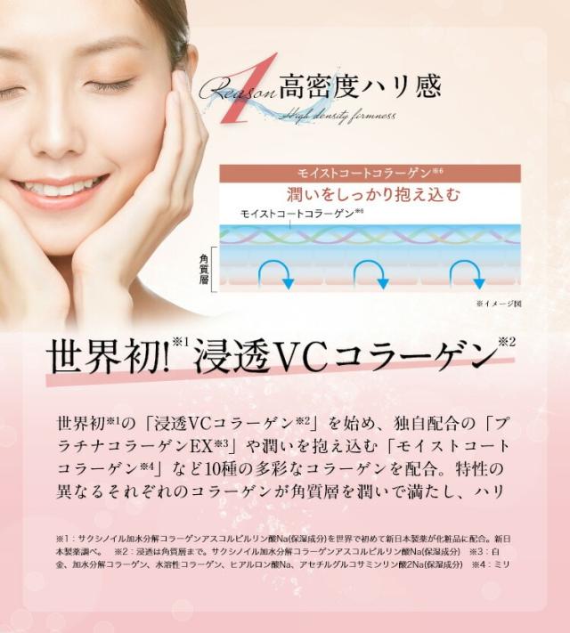 潤い密度を高める世界初※2の浸透VCコラーゲン※3に加え、潤いが続く、モイストインサート処方を採用。