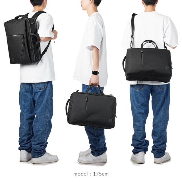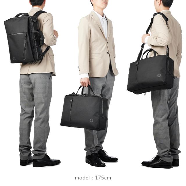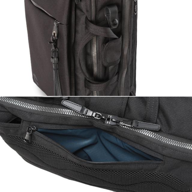 | シーンに合わせて変えられる3WAYビジネス特化リュック 金具を使わないことにより軽量化を実現した、コーデュラのビジネスリュック。 前面ポケット内装はオーガナイザー機能を持たせ携帯電話やペン、手帳などをまとめて収納。 正面ファスナーのオリジナルキーリングストラップは取り外して使うこともできます。 背面ルーム内装はPウレタンを入れた移動用PCポケットを装備。 メッシュ仕様の縦持ちハンドル、持ちやすく立体的かつ側面のマジックテープで折り畳める横持ちハンドル。 背面のファスナーを2箇所開けるとキャリーオン仕様に。 リュックショルダーはファスナーポケット内に収納できるだけでなく、ベルト・ハーネスベルトで服装に合わせて調整可能。 肩掛け用のショルダーベルトも金具を使わず、側面の輪っかにストラップを通す特殊なデザイン。 軽くて機能満載のビジネス向けリュックです。 |