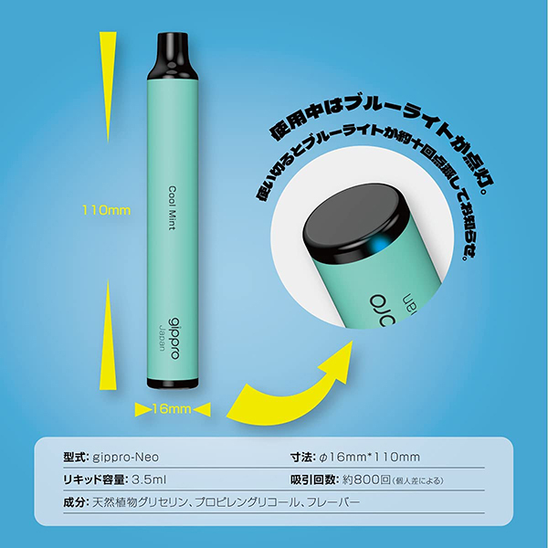 電子タバコ リキッド メンソール タール ニコチン0 使い捨て 電子タバコ VAPE 禁煙グッズ gippro-Neo