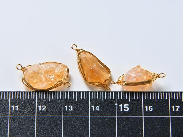 【内容詳細】チャーム 天然石 ワイヤーラッピング シトリン 4個 2つ穴