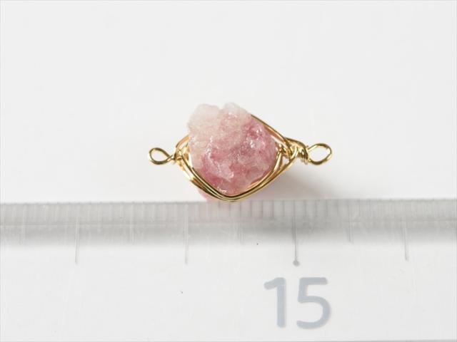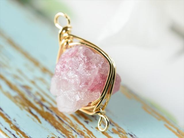 レッドトルマリンの天然石をゴールドのワイヤーで優雅にラッピングしたチャームです。