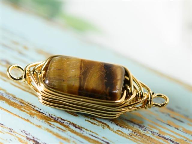 タイガーアイの天然石をゴールドのワイヤーで優雅にラッピングしたチャームです。