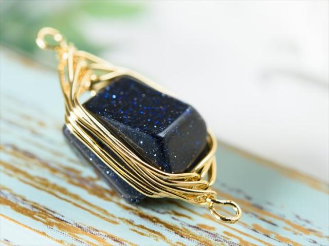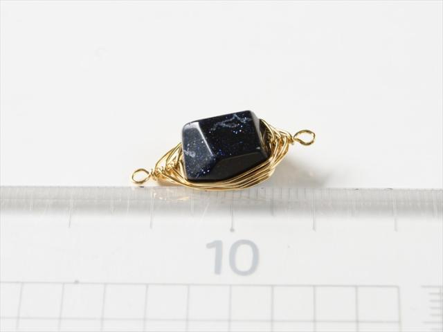 チャーム 天然石 ワイヤーラッピング ブルーゴールドストーン 4個 4ヶ 2つ穴 多面体 コネクターチャーム アクセサリーパーツ アクセサリー パーツ 問屋 天然石パーツ 上下カン付 つなぎパーツ ストーンチャーム 材料 ハンドメイド さや工房 手作り おすすめ 卸