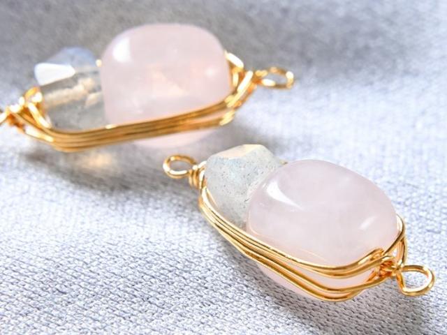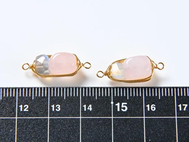 天然のローズクォーツとラブラドライトをあしらった繊細な印象のワイヤーラッピングのジョイントパーツです。