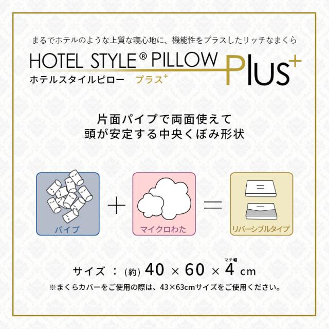 [ keyword | MORIPiLO モリピロ ホテルスタイルピロー プラス 40×60×4cm くぼみ型 リバーシブル ギフト 贈り物 父の日 パイプ わた 洗える ウォッシャブル 洗濯機 枕 まくら いびき 肩こり 高級感 ホテル仕様 ピーチスキン メッシュ 通気性 43×63cm相当 プレゼント ]