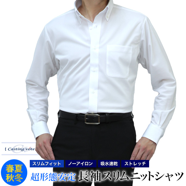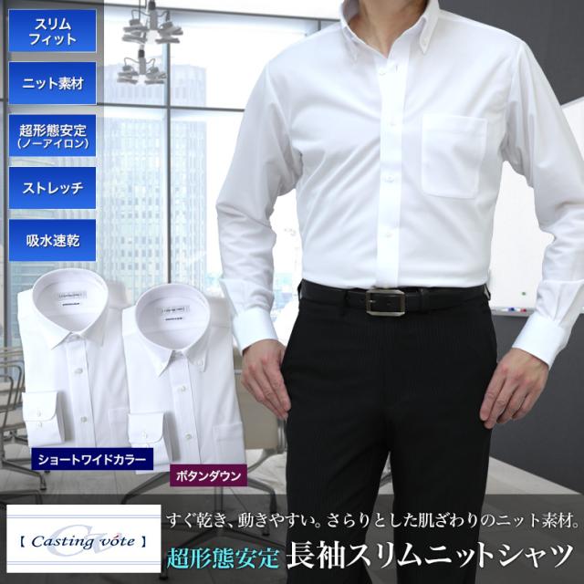ニットシャツ ノーアイロン 超形態安定 メンズ 長袖 Castingvote 吸水速乾 ストレッチ ボタンダウン ワイドカラー ドレスシャツ ノンアイロン クールビズ ワイシャツ