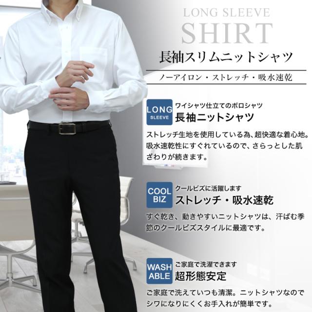 【超形態安定】【速乾】【ストレッチ】のスリムニットシャツ