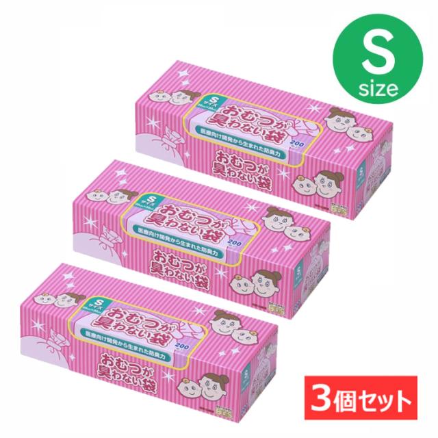 【3個セット】ゴミ袋 おむつ 防臭袋 送料無料 処理袋 赤ちゃん 衛生 ビニール袋 臭わない袋BOSベビー用箱型 (Sサイズ200枚) 使い捨て クリロン化成