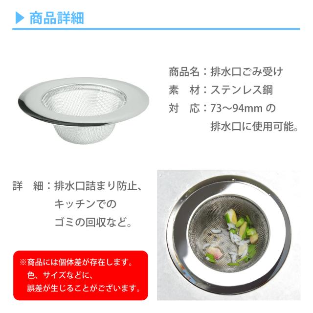 排水口 ゴミ受け ステンレス ごみ受け 2個セット 洗面所 風呂 キッチン バス 髪の毛 73〜94mm h-gomiuke