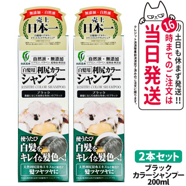 2個セット 利尻カラーシャンプー(ブラック)200mL 無添加 白髪用 白髪染め 男女兼用 ノンシリコン 植物エキス 髪・頭皮に優しい 利尻昆布エキス キメ細やかな泡で 使い続けるほどに染まる 全体染め 利尻昆布 白髪染め ピュール サスティ 送料無料