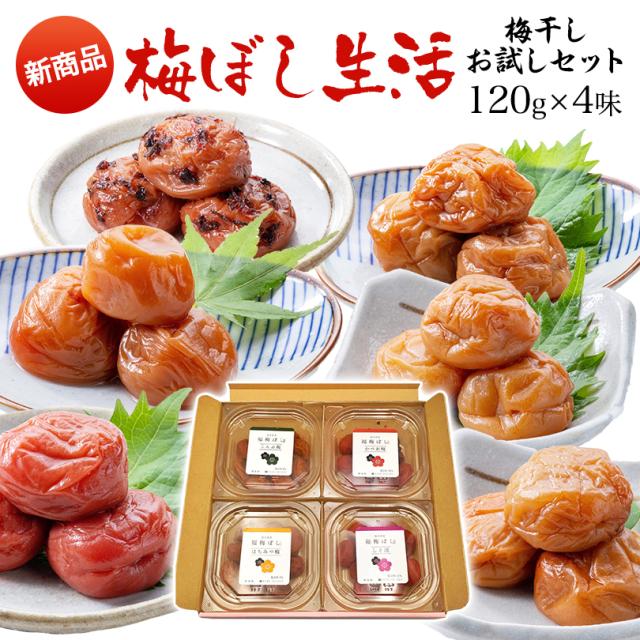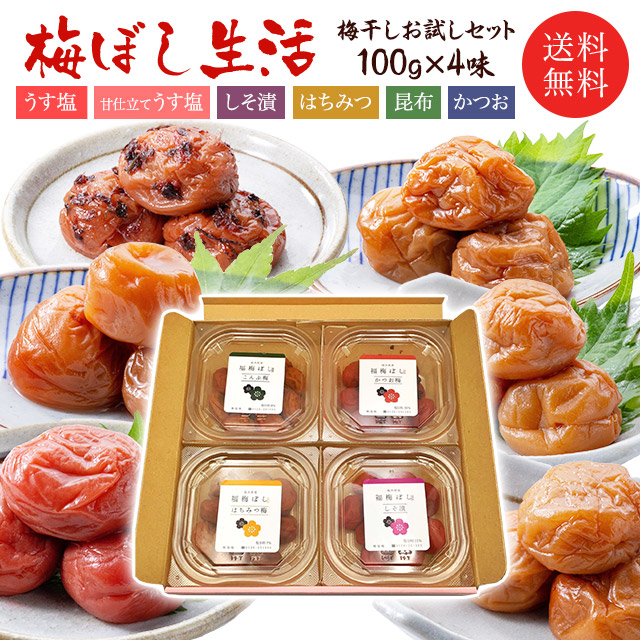 梅干し 送料無料 梅ぼし生活 \選べる組合せ/福梅ぼし梅干し食べ比べセット各100gx4味 無添加しそ漬 うす塩 はちみつ 昆布 かつお 甘仕立てうす塩味/食べ比べ/ご飯のお供/酸っぱい/福井県産紅映梅/国産 お取り寄せ グルメ
