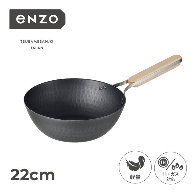 enzo エンゾウ 中華鍋 フライパン 22cm IH ガス対応 鉄 IRON WOK en-011
