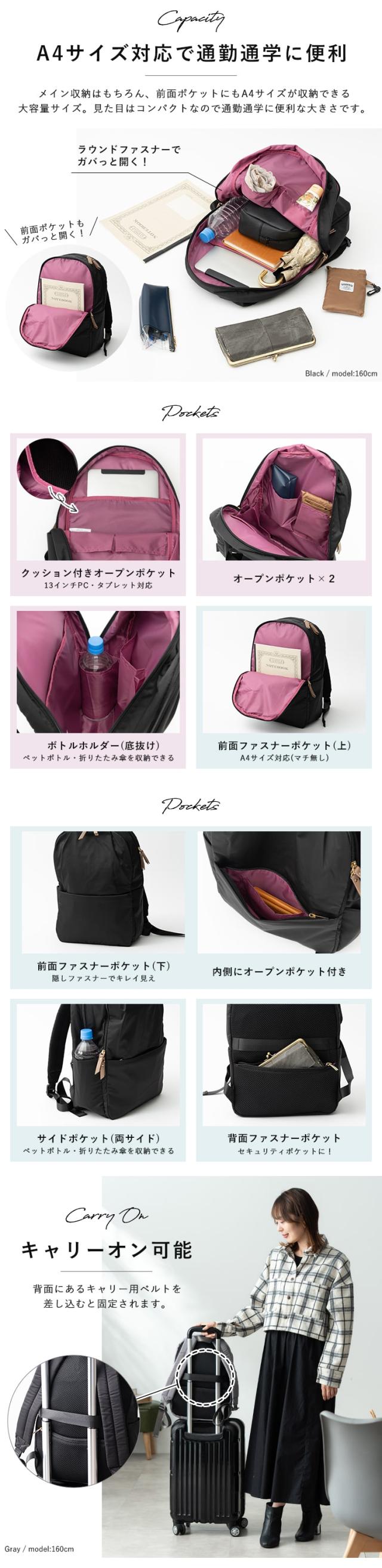 通勤通学に旅行、マザーズバッグと幅広いシーンで活躍します。