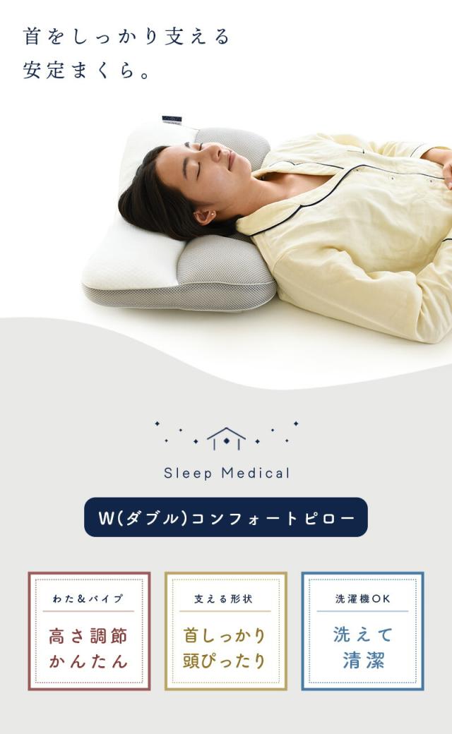 枕 Wコンフォートピロー ダブルコンフォートピロー スリープメディカル枕 健康枕 横向き寝 洗える まくら いびき 高さ調整 パイプ 頭痛 ギフト 敬老の日 当店限定