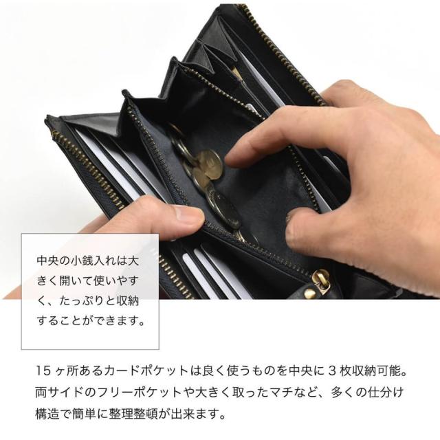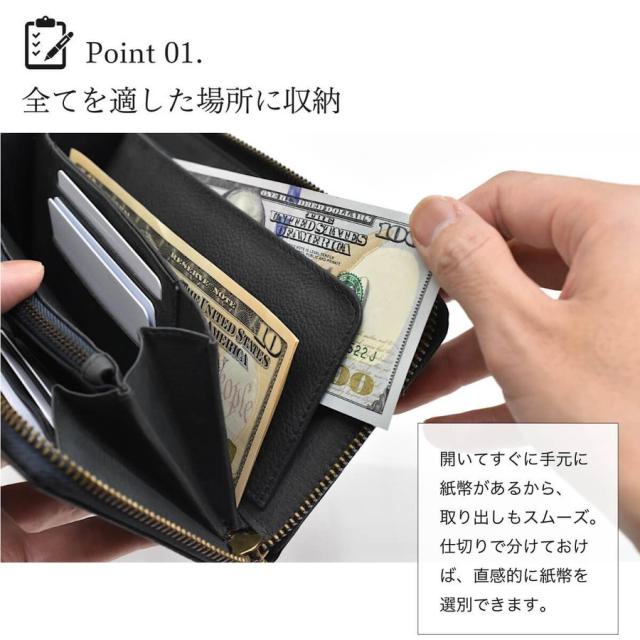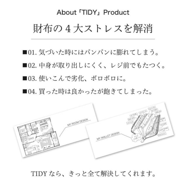 長財布 TIDY 本革 ヌメ革 レディース メンズ 財布 Mollis L字ファスナー 整理整頓 仕分け 収納 牛革 使いやすい ブランド ハレルヤ hallelujah