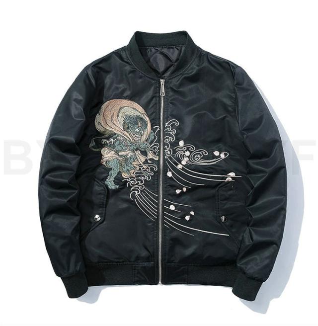 スカジャン ブルゾン ジャケット メンズ ライトアウター 秋物 ma-1 風神 雷神 刺繍 jacket ビッグシルエット スカジャン 2018 カコイイ 秋 冬 大きいサイズ