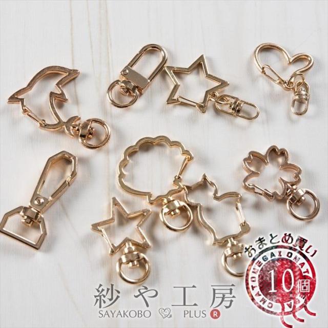 キーホルダーパーツ ゴールド 約10個 10ヶ バッグチャーム ナスカン デザインナスカン おしゃれ モチーフ バリエーション アクセサリー パーツ パーツ キーリング キーホルダー メタルパーツ 金属パーツ 材料 問屋 ハンドメイド資材 さや工房