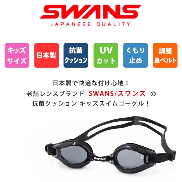 値下げ 送料無料 SWANS スワンズ キッズ スイムゴーグル SWRVJ-005N 日本製 ゴーグル 水泳 小学生用 6〜12才 抗菌クッション 水中眼鏡 UVカット くもり止め こども用 スタンダードモデル 水中メガネ スクール 水着 小物 スイミング 男女兼用 メール便