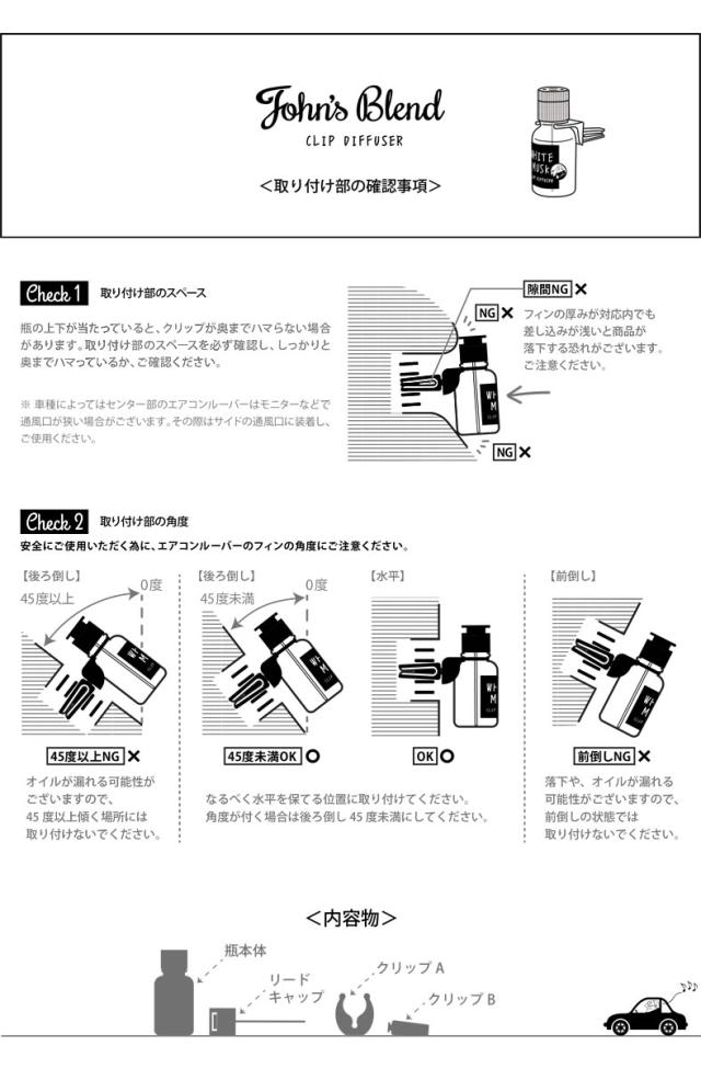 【新香り登場】ジョンズブレンド クリップディフューザー カーフレグランス Johns Blend Clip Diffuser oa-jon-20 ホワイトムスク ムスクジャスミン レッドワイン アップルペアー ミュゲ ブラックムスク 車用芳香剤 Johns Blend メンズ レディース おしゃれ アーベン