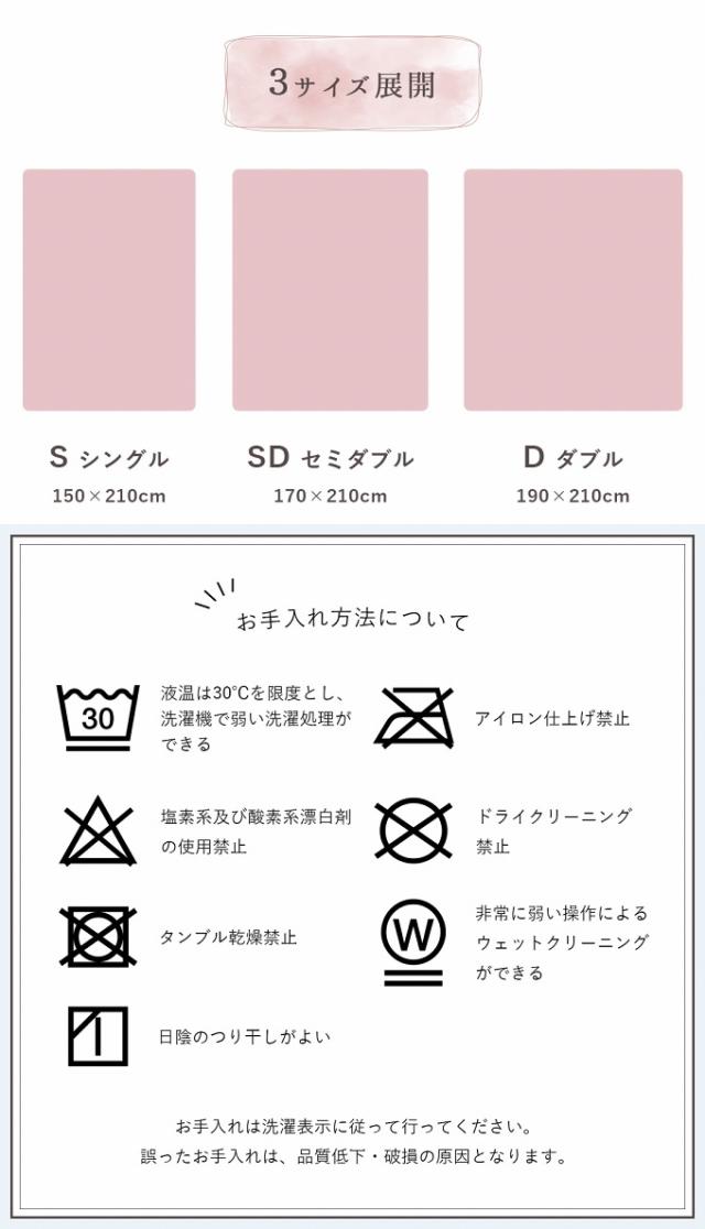 イメージ画像はシングルサイズです。 本商品は、同シリーズでも色味が異なる場合がございます。(商品不良によるものではございません。) 生産時期により同色でも若干色味が異なる場合がございます。 使い始めは遊び毛が出る可能性がございますので、ご使用前に掃除機でやさしく吸い取ってください。 滑らかな肌触りが特徴の製品です。ご使用中の転倒にご注意ください。 メーカー直送品のため、ご注文後のキャンセル・返品はお受けできません。 北海道、沖縄、離島地域も送料無料でお届けいたします。 画面上のカラーはご使用ブラウザやモニターの設定により、実物とは若干異なる場合がございます。 あらかじめご了承の上、ご注文をお願いいたします。 |