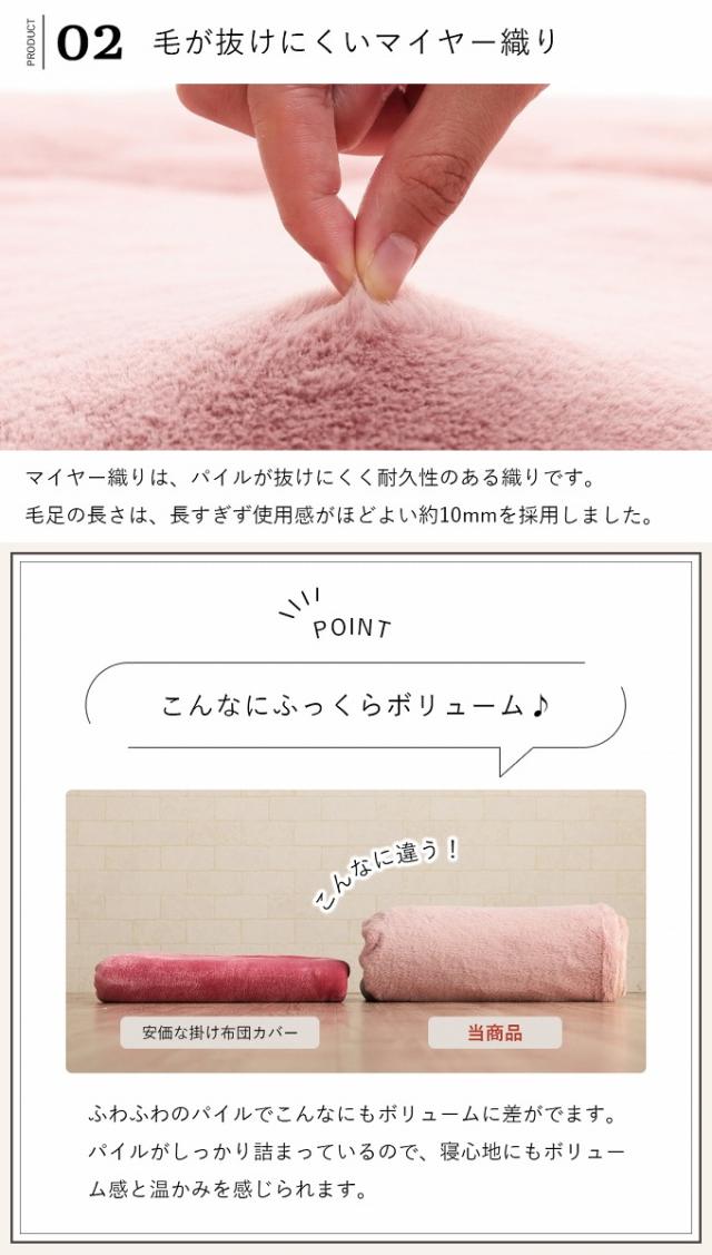 イメージ画像はシングルサイズです。 本商品は、同シリーズでも色味が異なる場合がございます。(商品不良によるものではございません。) 生産時期により同色でも若干色味が異なる場合がございます。 使い始めは遊び毛が出る可能性がございますので、ご使用前に掃除機でやさしく吸い取ってください。 滑らかな肌触りが特徴の製品です。ご使用中の転倒にご注意ください。 メーカー直送品のため、ご注文後のキャンセル・返品はお受けできません。 北海道、沖縄、離島地域も送料無料でお届けいたします。 画面上のカラーはご使用ブラウザやモニターの設定により、実物とは若干異なる場合がございます。 あらかじめご了承の上、ご注文をお願いいたします。 |