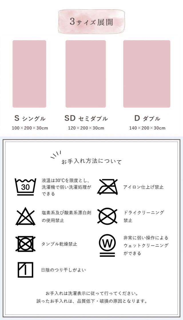 約120×200×30cm(セミダブルサイズ) ※厚み25cmまでのマットレスに対応 |