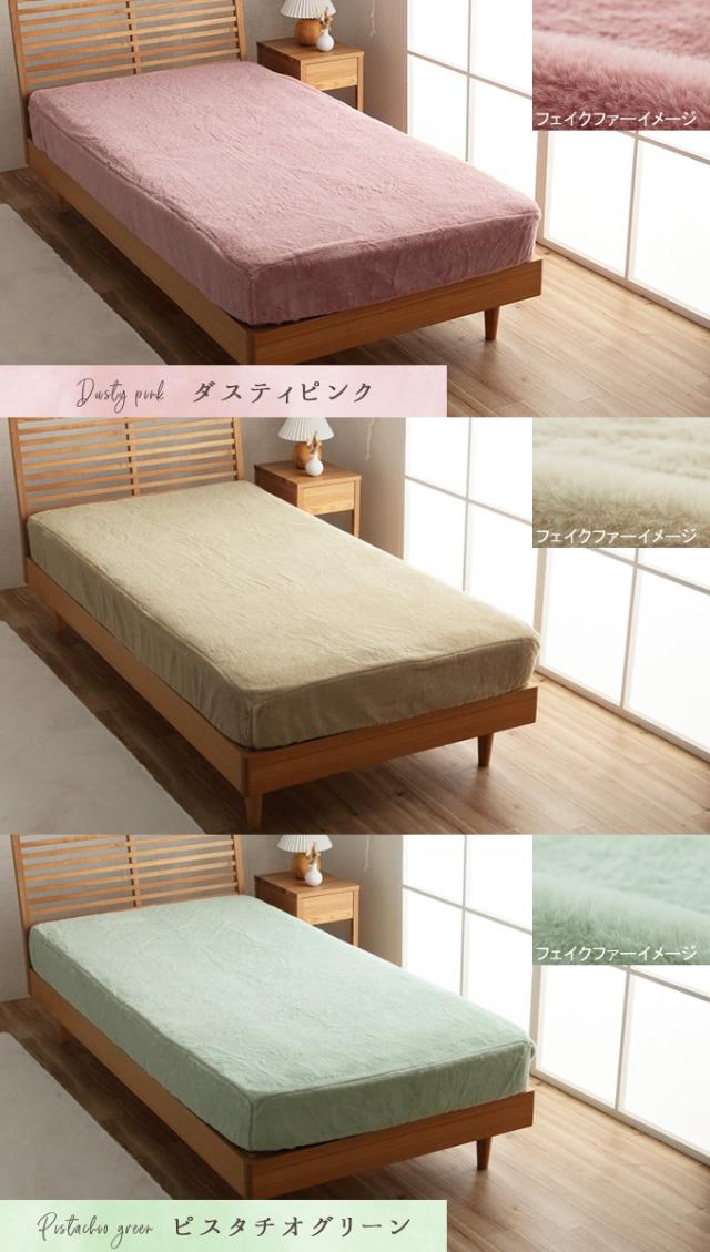 大人かわいいシンプルデザイン、ラピアスシリーズのボックスシーツです。 スノーホワイト、パールグレー、ダスティピンク、ミルキーベージュ、ピスタチオグリーンの5色からお選びください。 ふわふわな極上のタッチ感で暮らしに幸せをお届けします。 表地にはフィラメント糸でふわふわなフェイクファーを使用しています。 フェイクファーは、毛足の向きによって色の見え方が変わるのが特長で、毛羽立ちが少なく、耐久性にも優れています。 フェイクファーは毛が抜けにくいマイヤー織りで、毛足の長さは長すぎず使用感がほどよい約10mmを採用しました。 裏面がゴムタイプの為、着脱が簡単で洗濯の時に非常に便利です。 厚み25cmまでのマットレスに対応しております。 また、マットレスにしっかりフィットするので使用時にズレにくい。 洗濯機での丸洗いが可能なので清潔にご使用いただけます。 ■サイズ違いもご用意しております↓ ボックスシーツ ラピアス シングル ボックスシーツ ラピアス ダブル ■その他のラピアスシリーズはこちら↓ ラピアスシリーズ ■その他の寝具はこちら↓ 寝具 |
