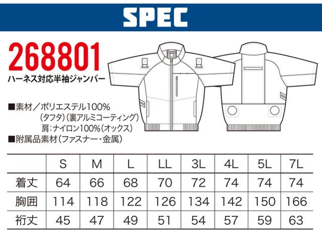 クロダルマ ファン対応 ハーネス対応 半袖 ジャンパー 268801 服のみ エアセンサー