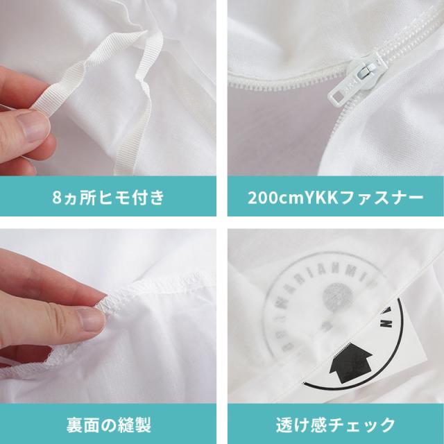 [ keyword | 布団カバー2点セット シングルサイズ 150×200cm 105×205cm 清潔 抗菌防臭加工 SEKマーク付き 真ん中シースルーネット 無地 ホワイト カバー 白 抗菌 防臭 SEK シングル 200cmファスナー YKK 掛け布団カバー 敷き布団カバー 敷布団カバー 送料無料 ]