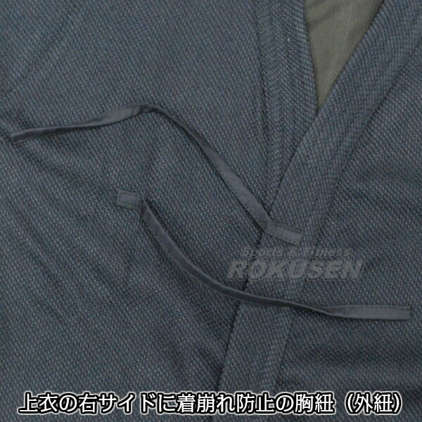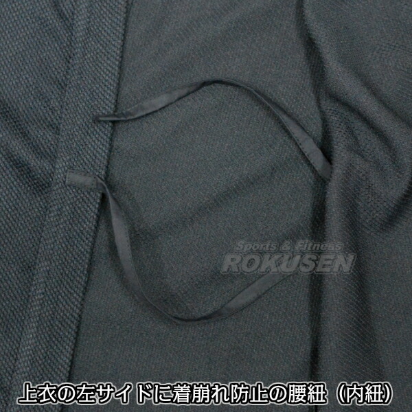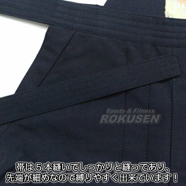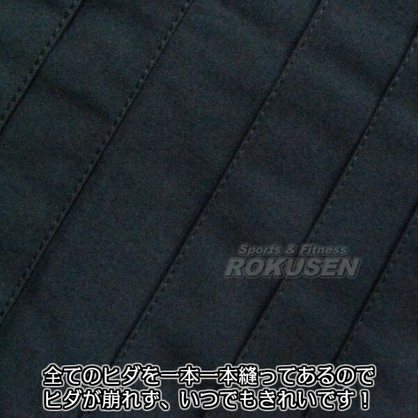 袴も同様にポリエステル剣道袴の弱点である光沢を極限まで抑えて綿のような見た目を実現、前帯は先紐を補足して結びやすく、内垂を付けることでひだの開きを抑え、立ち姿を美しく見せます。